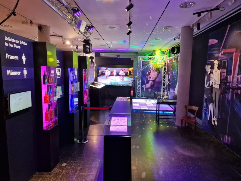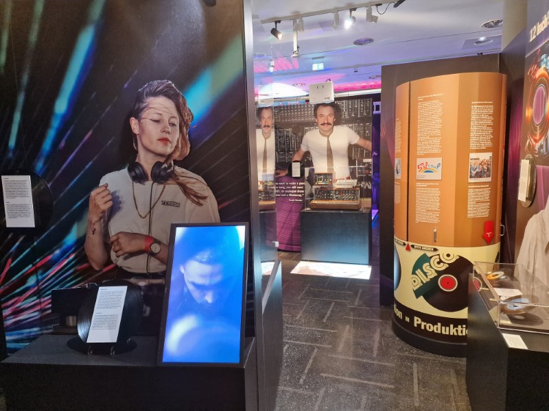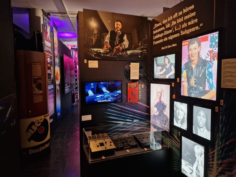 Inszeniert wird die faszinierende Geschichte der Diskotheken als Discobesuch: Nach einer Begegnung mit dem Türsteher und dem Gang durch die Garderobe mit einer großen Auswahl an Outfits der Disco-Ära ist der Weg zum DJ-Pult frei. Hier öffnet sich der Blick auf die kreativen Köpfe des Business. Vom Produzenten über die Musiker bis hin zu DJ-Autor:innen zeigt sich die ganze Vielfalt tanzbarer Rhythmen. Höhepunkt der Ausstellung ist schließlich die große, durch interaktive Elemente gestaltete Tanzfläche, sie lädt zur Auseinandersetzung mit den Hits der Disco-Ära ein. Neben Interviews mit Akteuren der Clubszene zeigt die Ausstellung Plakate, Tonträger, Filme und Fotografien.