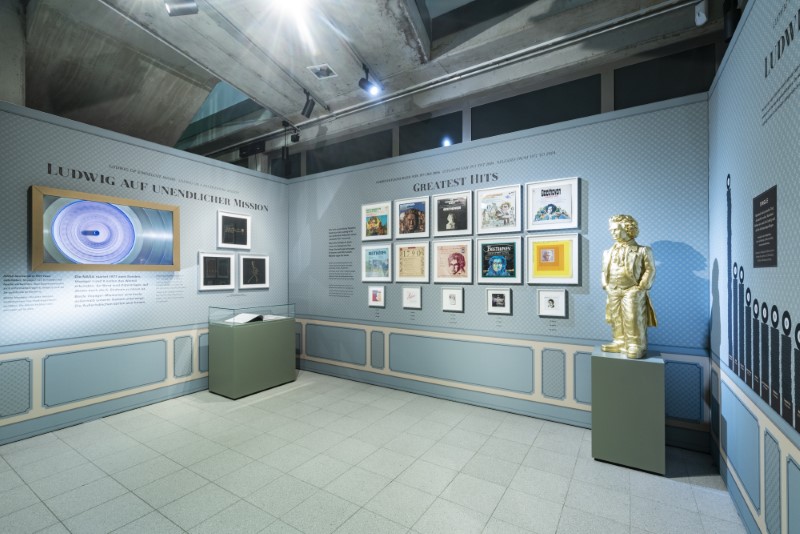 Die Beethoven schon zeitgenössisch begleitenden Fragen nach Gewalt und Pathos, nach Genie und Männlichkeit, nach der Rolle, die Beethoven für nationale und internationale Interessen einnimmt, sind heute wohl dringlicher denn je. Das rock´n´popmuseum beleuchtet mit der Ausstellung „Ludwig lebt! Beethoven im Pop“ anlässlich des 250. Geburtstages des Komponisten offensichtliche und überraschende Spuren von Beethoven im Pop, angefangen mit Ludwigs 5. Sinfonie, die mit der Voyager Raumsonde auf unendliche Mission in den Weltraum geschickt wurde. Ludwig lebt zeigt Beethovens Spuren bei Bands wie The Beatles, Accept, Electric Light Orchestra, Die Toten Hosen und Künstler/innen wie Helge Schneider oder Judith Holofernes, in Filmen wie A Clockwork Orange und Elephant oder Inglorious Basterds, sowie in Comics wie den Peanuts und Goofy.